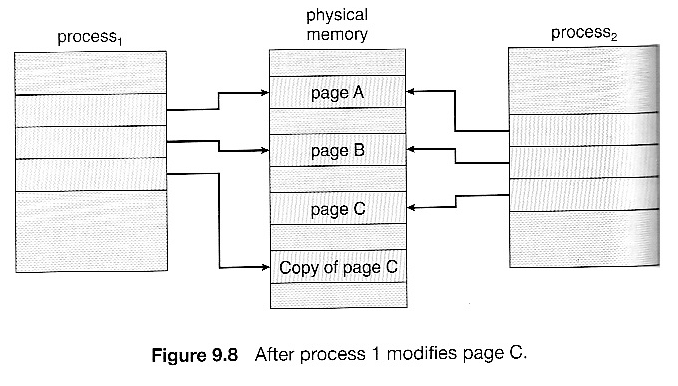 - OS에서는 Copy-on-write가 보통 fork( )를 수행할 때 적용된다.