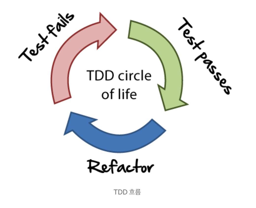 - 프로덕션 코드보다 테스트 코드를 먼저 작성하는 개발 방법