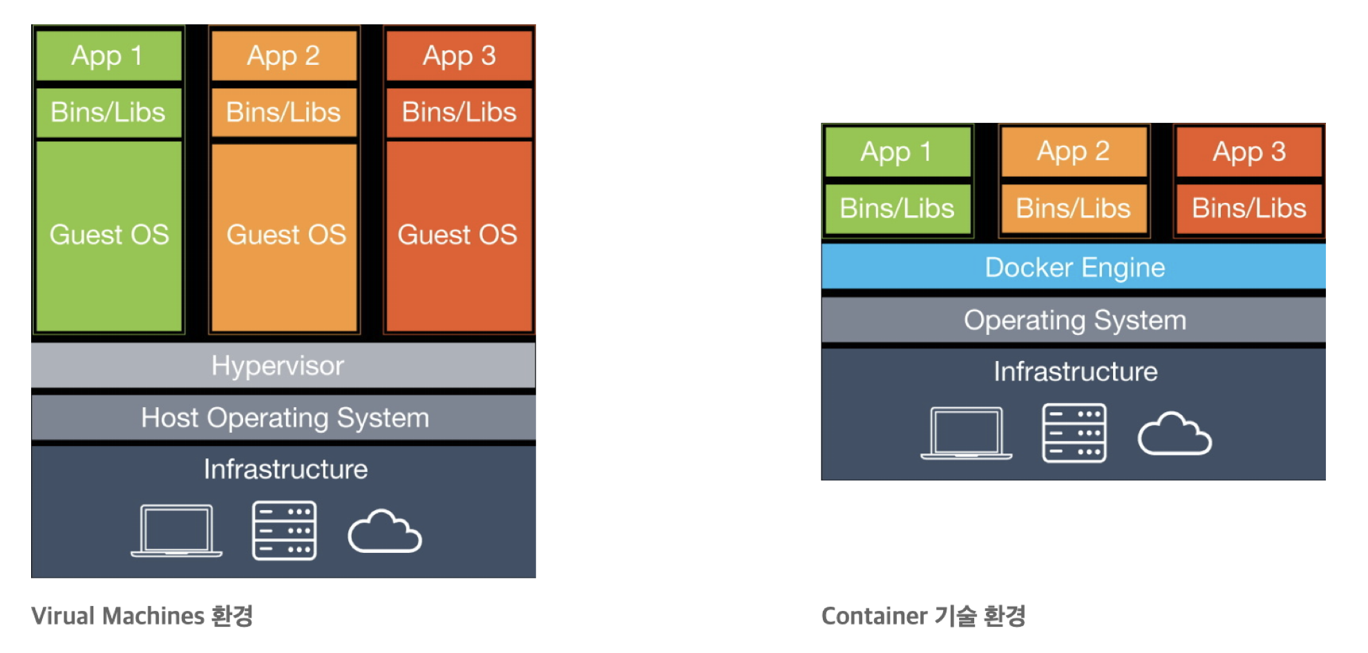 - 애플리케이션은 도커 엔진을 통해 호스트 자원을 사용할 수 있고 구조적으로 게스트 OS가 없기 때문에 용량도 매우 가볍다.